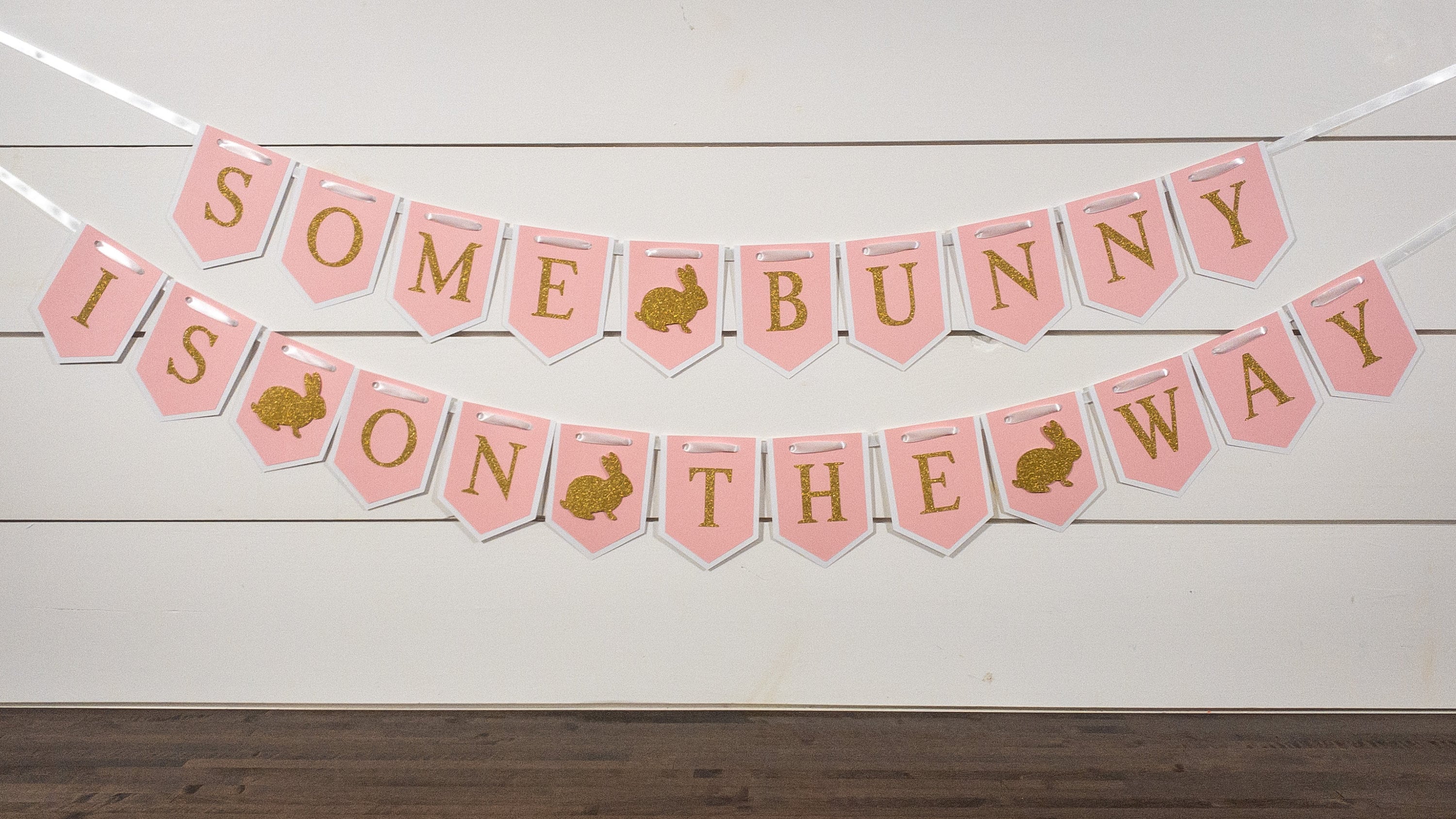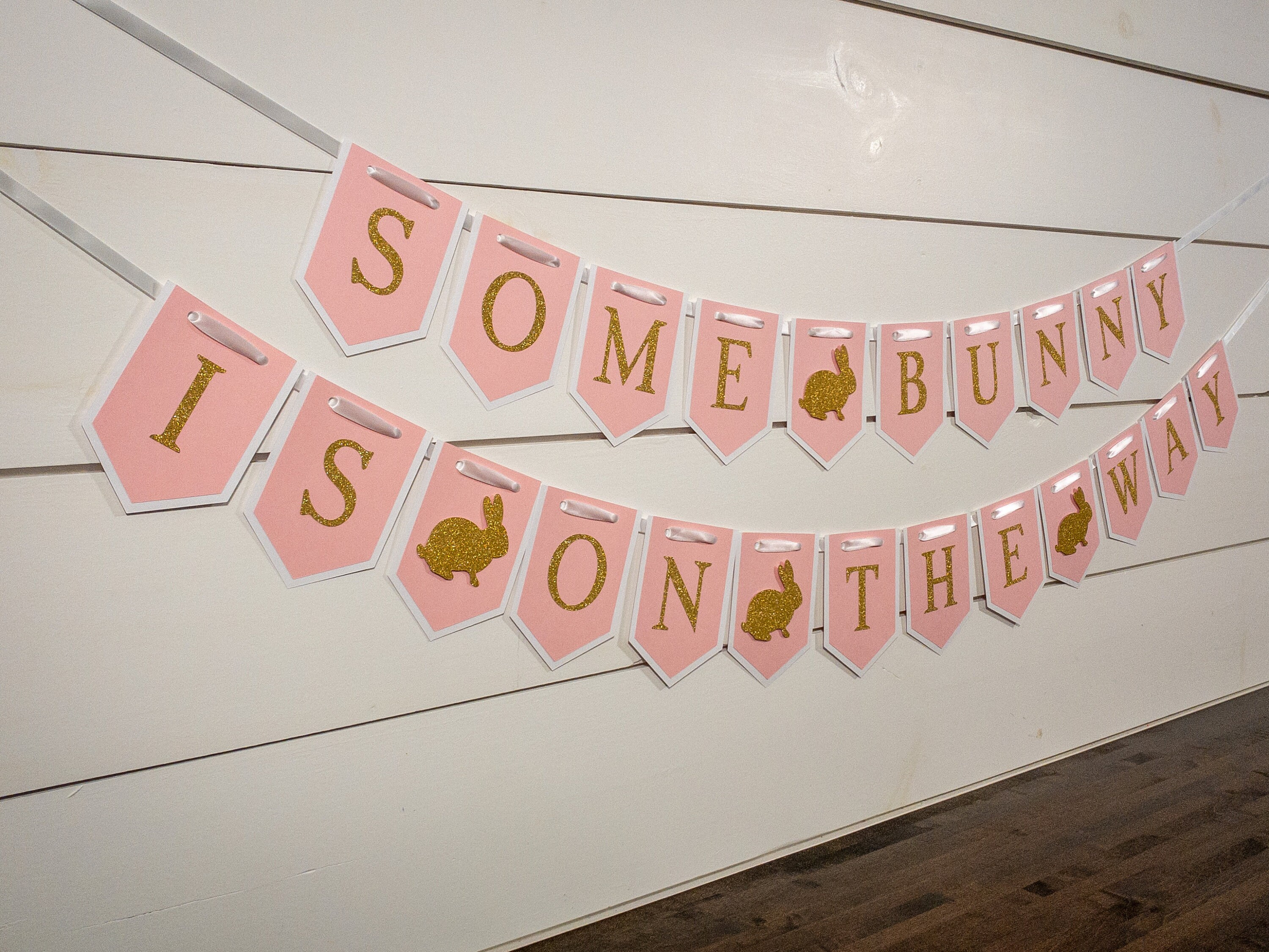 Are you expecting a little bunny or hosting a bunny themed baby shower? This pink and gold bunny banner is the perfect addition to your party decor!
