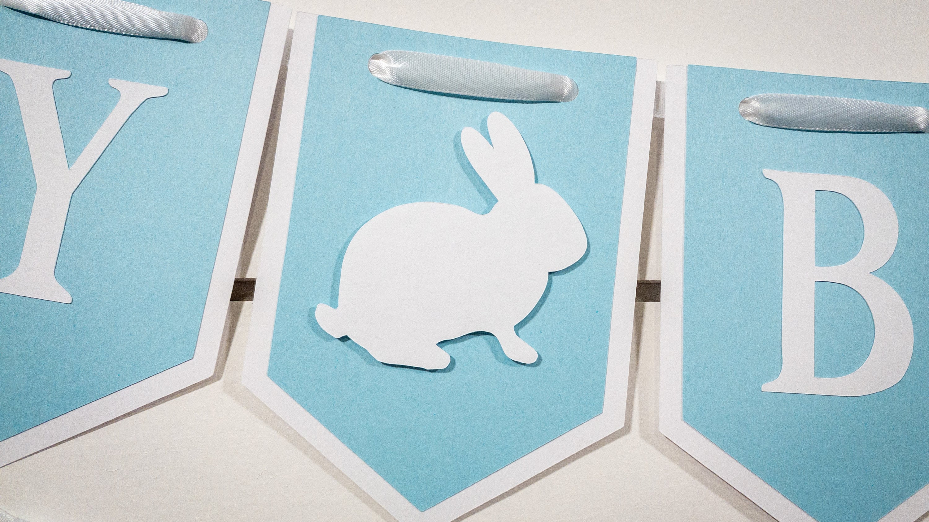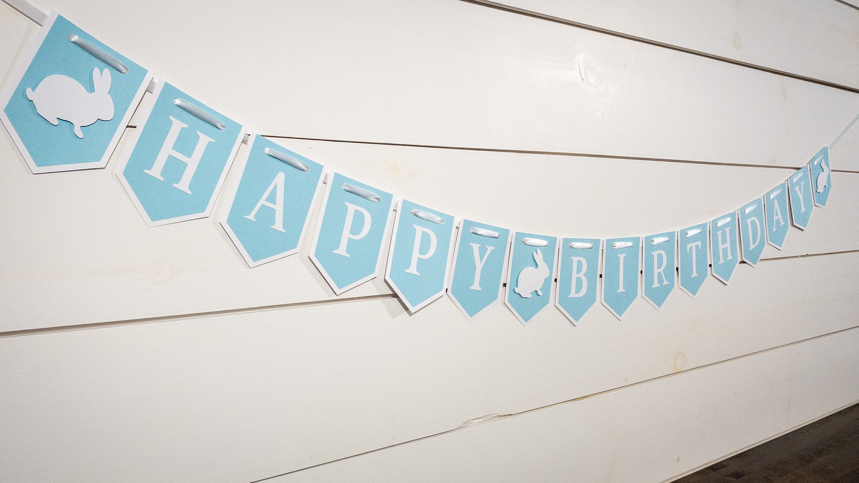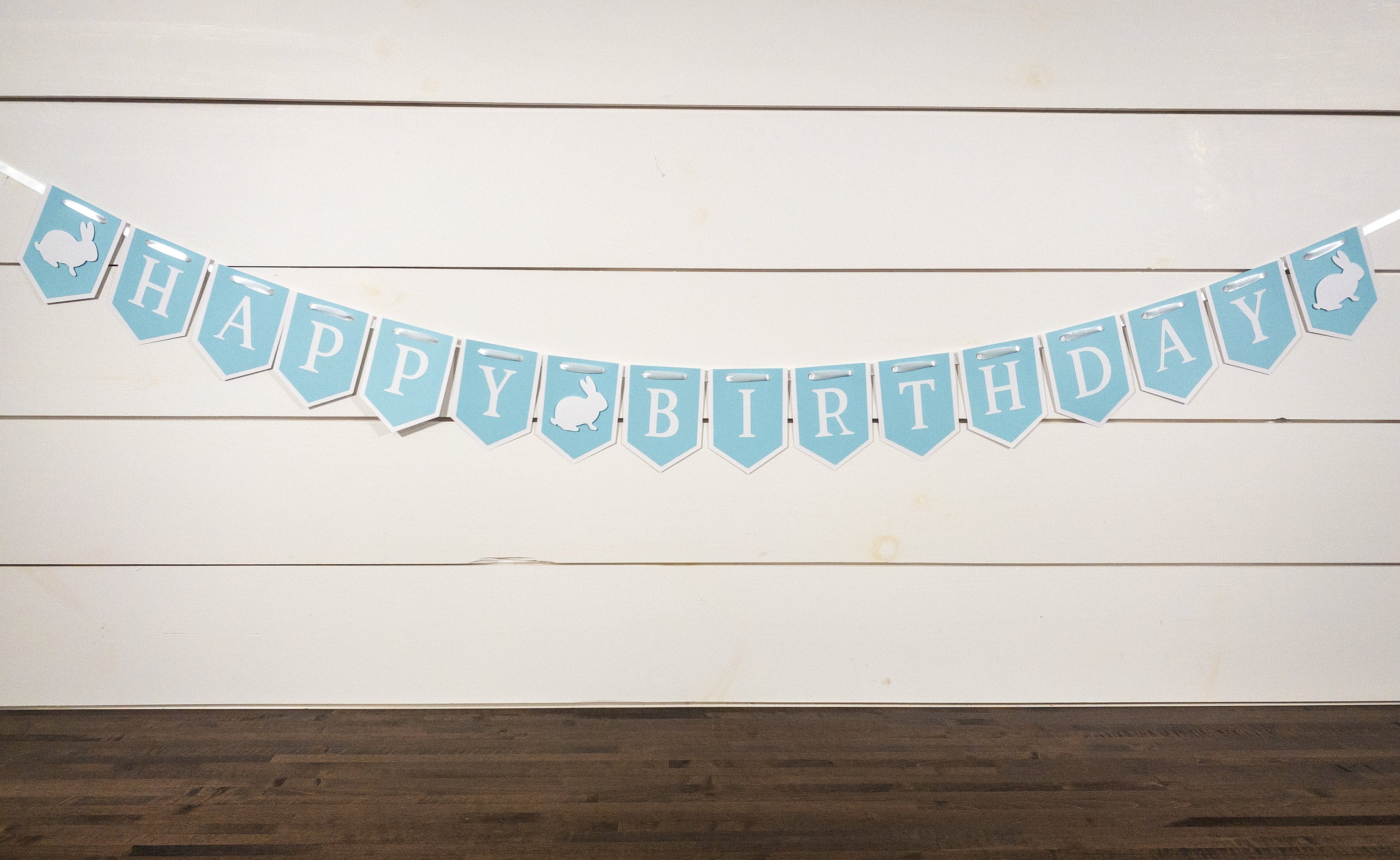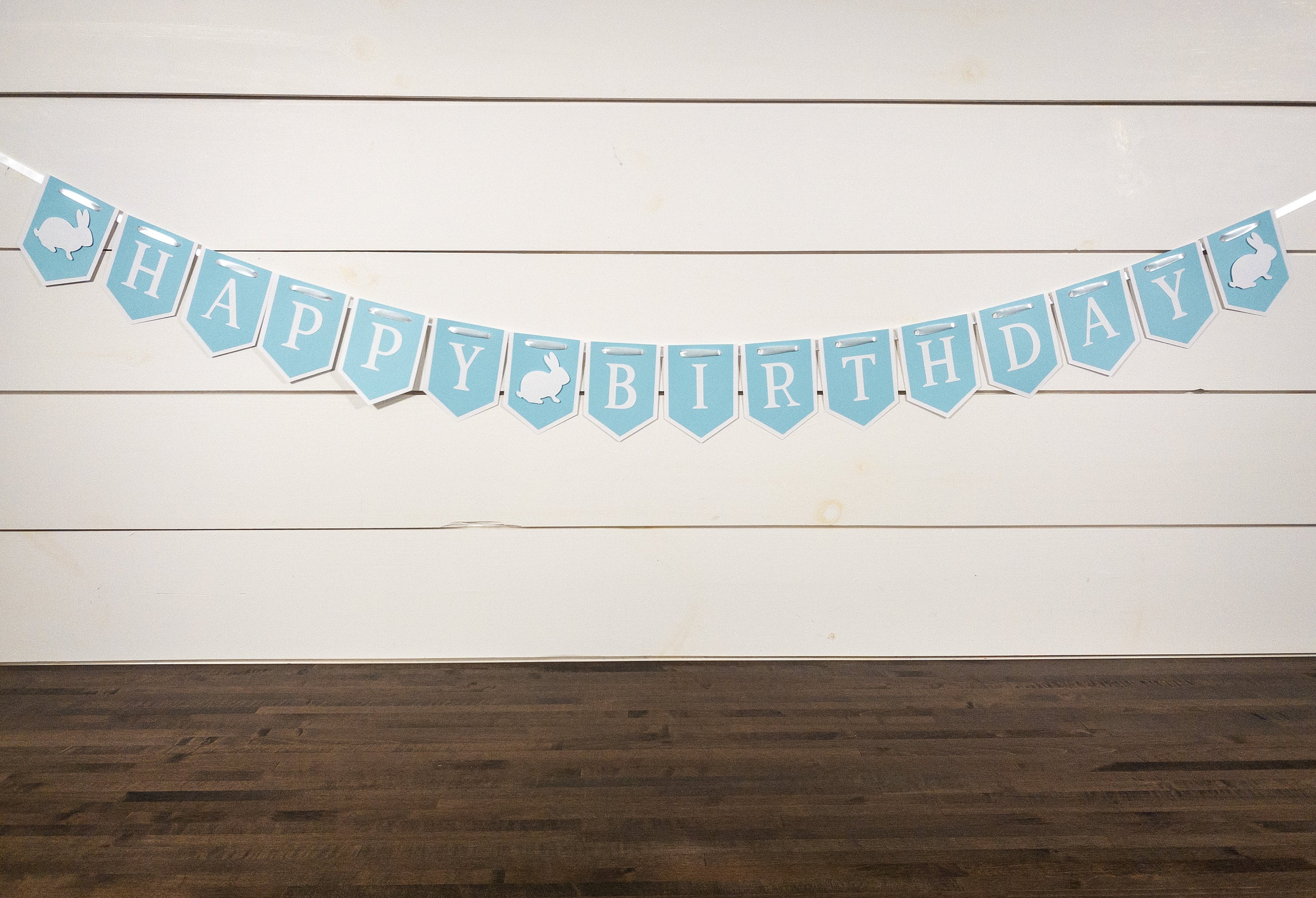 Is your little bunny celebrating a birthday? This blue and white bunny banner is the perfect addition to your party decor!
